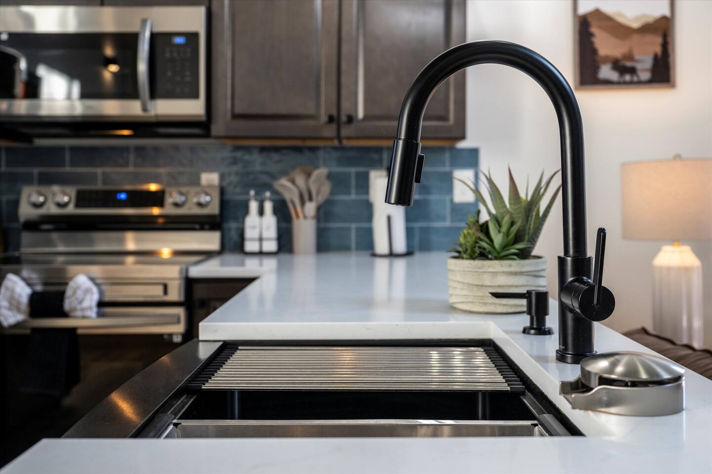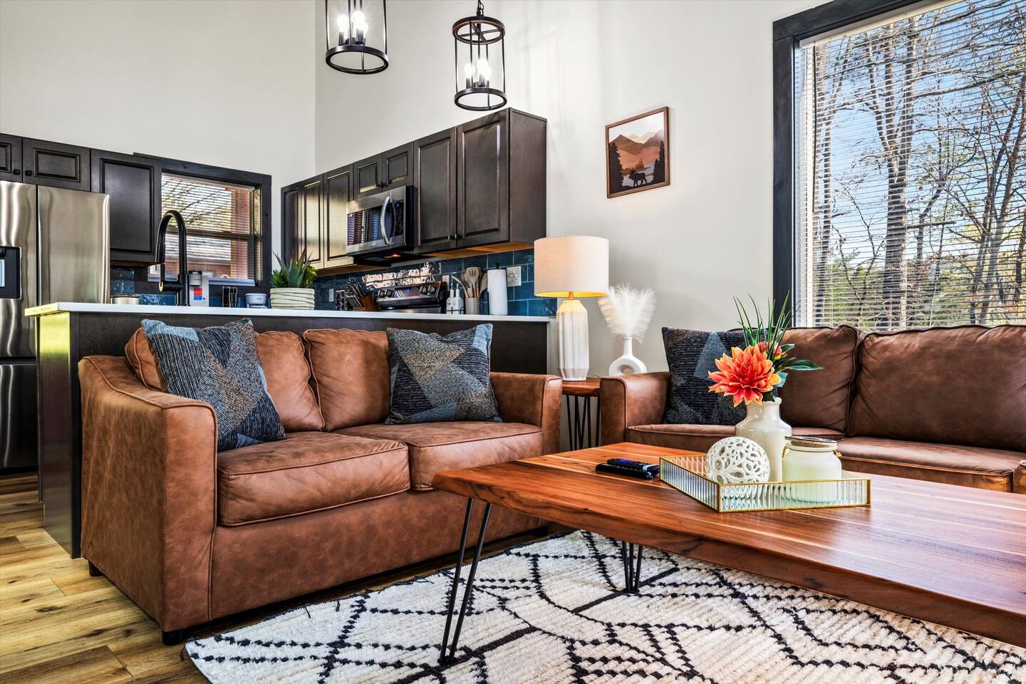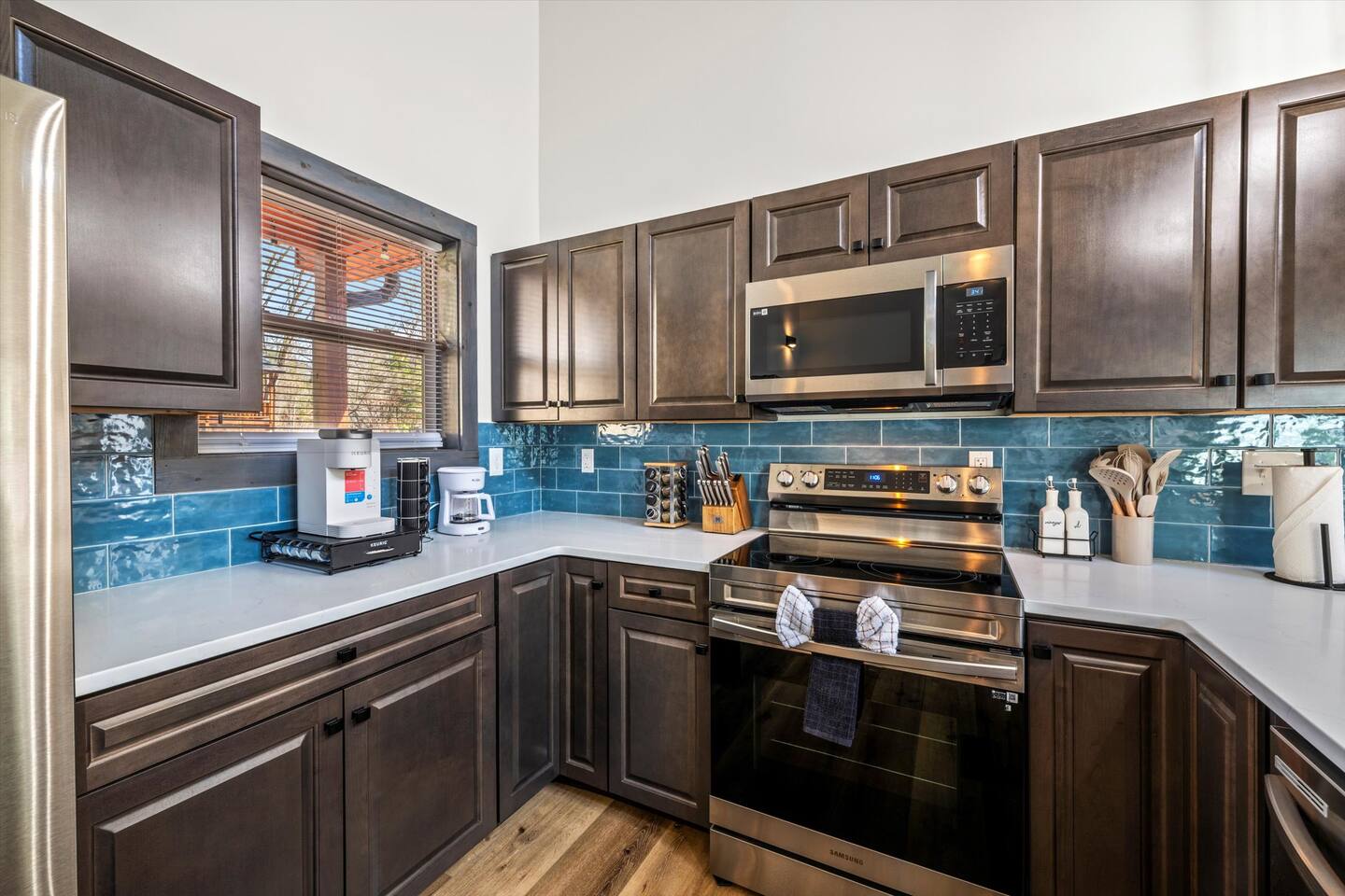 - **Fully Equipped Kitchen** with stainless appliances, granite countertops, & coffee essentials