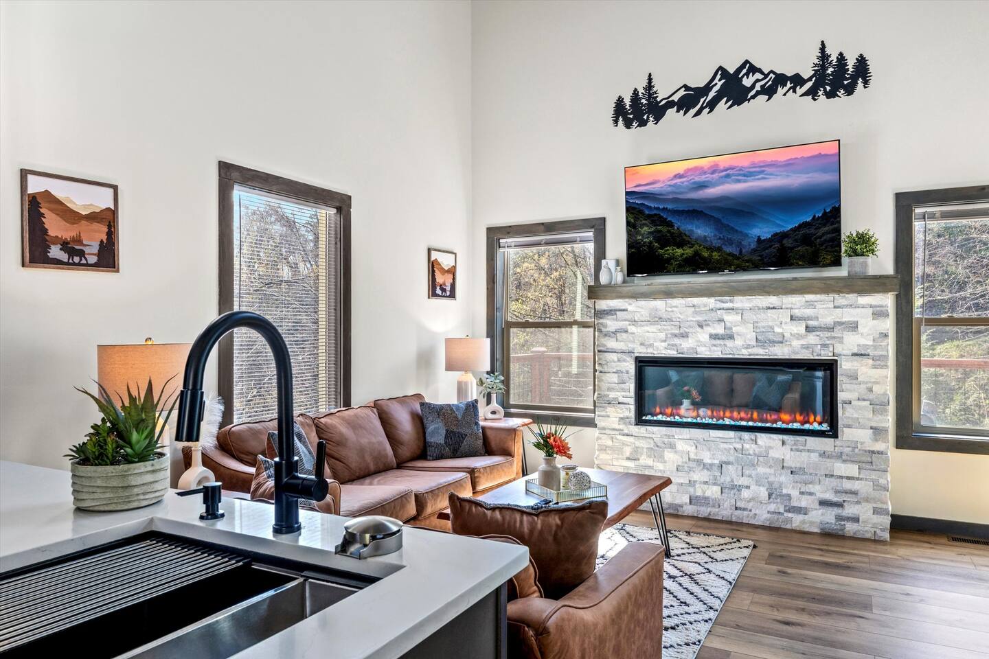 - **Cozy Comforts:** Gas fireplace, memory foam mattresses, Smart TVs in every room