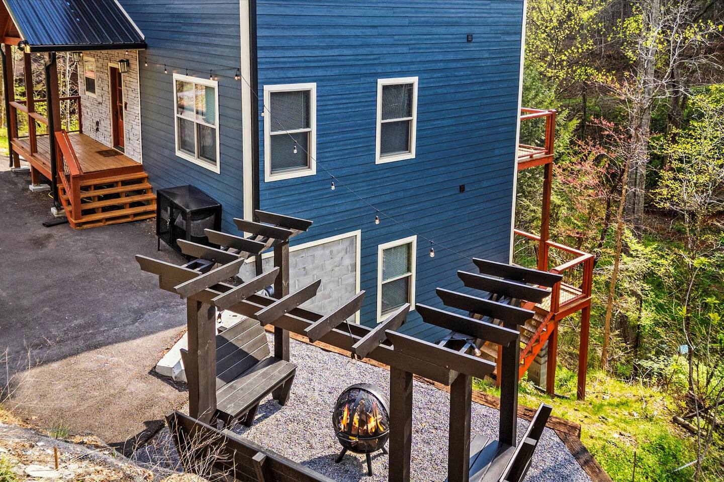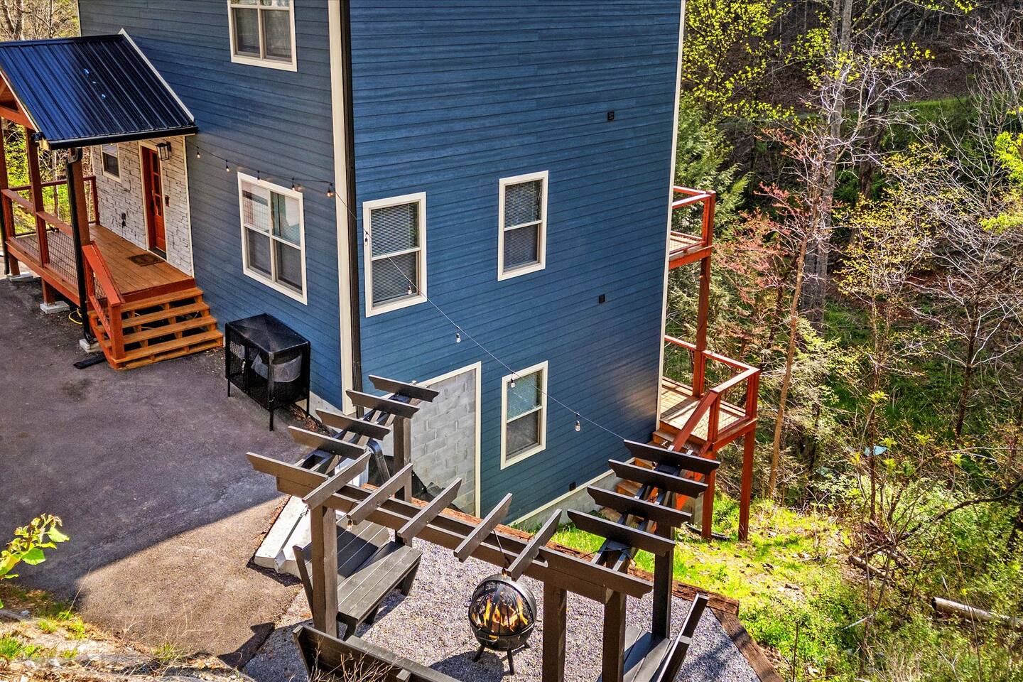 - **Outdoor Bliss:** Private **6-person hot tub, fire pit**, and a park grill