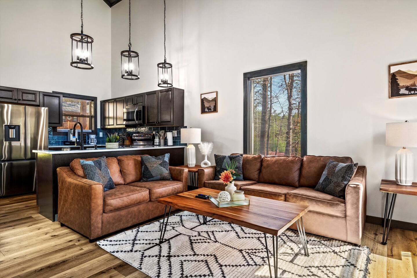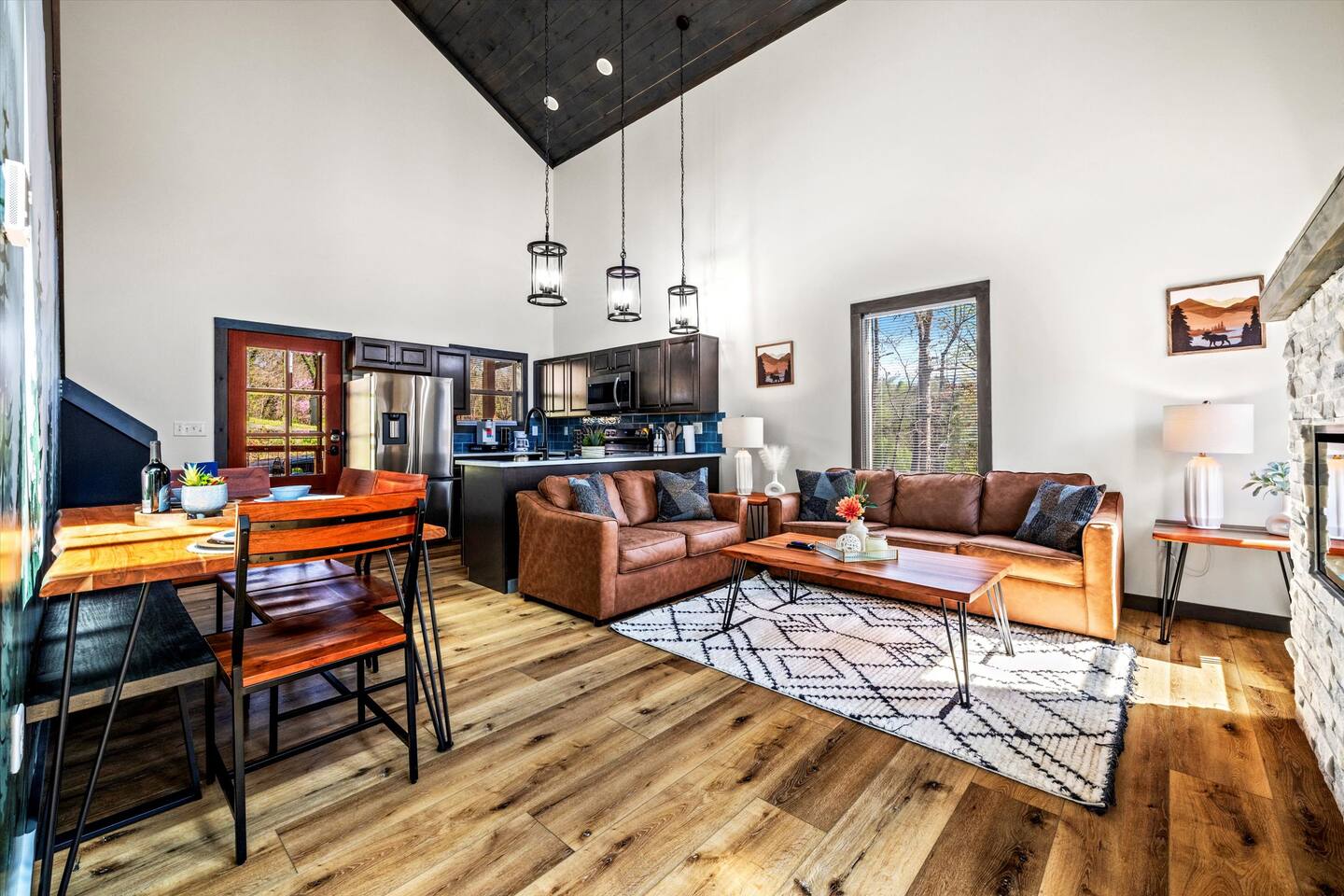 - Vaulted ceilings & floor-to-ceiling windows