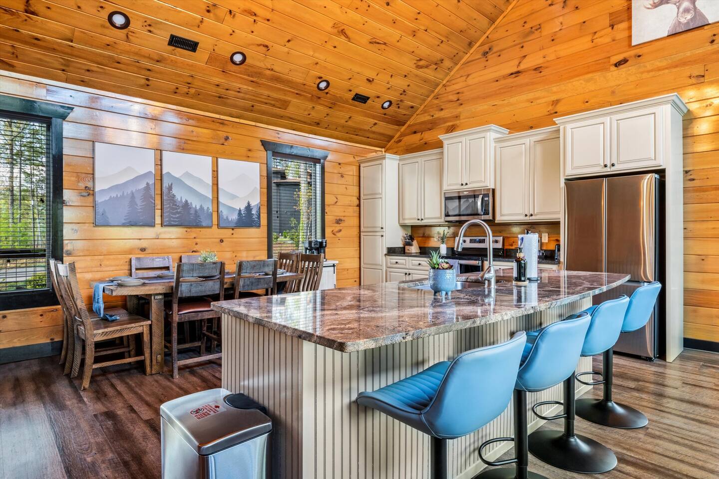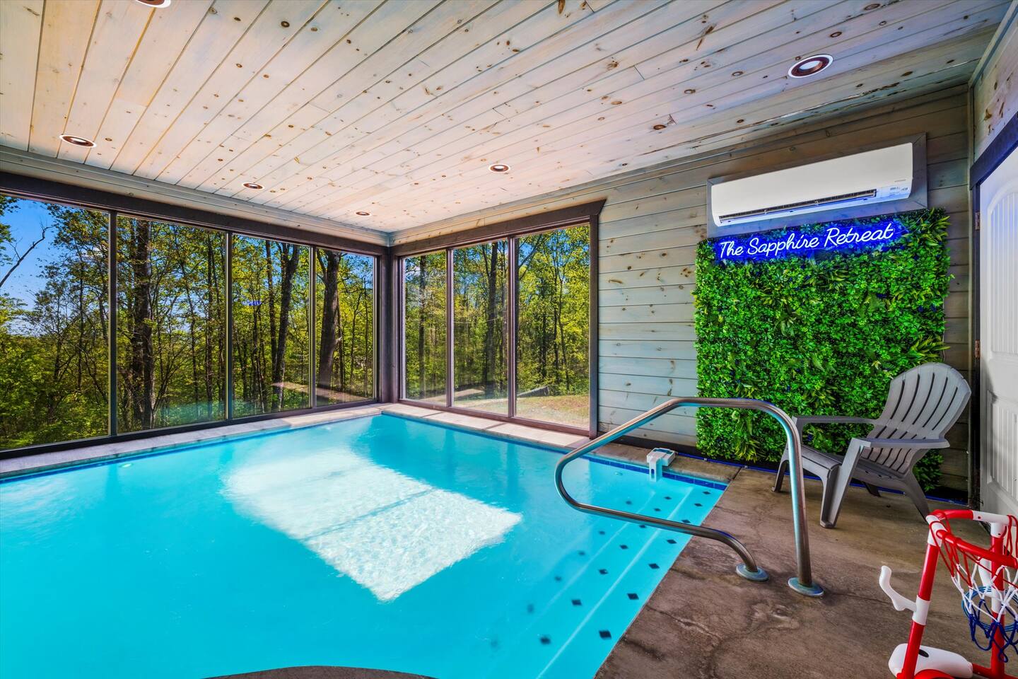 Step into your personal paradise at our stunning poolside retreat—an opulent escape harmonizing luxury and entertainment amidst the breathtaking mountain landscape. This cabin is your exclusive haven, boasting an indoor HEATED pool, a bubbling hot tub, and an inviting space for s'mores under the stars. With accommodations for up to 12 guests, it's a treasure trove of amenities, promising an unforgettable experience for your family gatherings or corporate retreats.